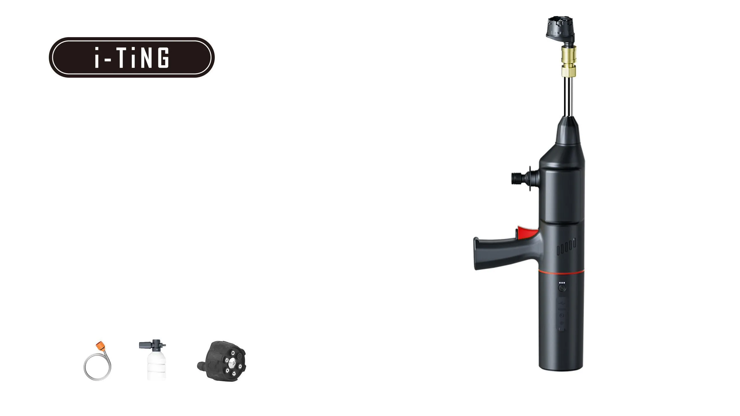 Type-C şarj kablosu, 3’lü adaptör, 5 m su hortumu, köpük spreyi ve telefon tutucu da dahil