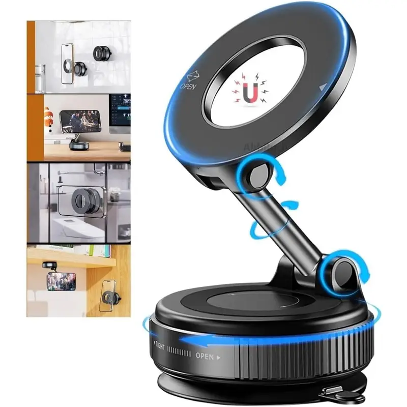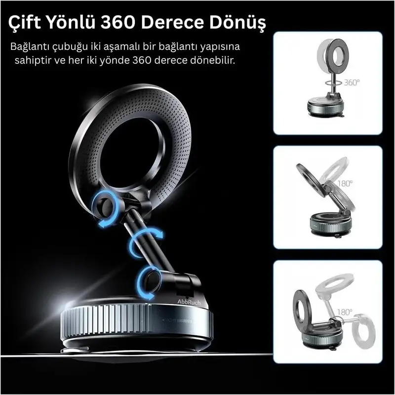 Devrimci Tasarım Manyetik vakumlu araç telefonu tutucumuz, gelişmiş vakum adsorpsiyon teknolojisi ile donatılmıştır. Zahmetsiz kurulum ve sökme sağlar; sadece döndürmeniz yeterlidir, böylece pürüzsüz yüzeylere sıkıca yapışır. Çift Yapışma Sistemi Vantuzlu navigasyon standı, ayna, cam ve metal yüzeylere güvenli bağlantı sağlamak için vakum ve manyetik kuvvetleri bir araya getirir. Spor salonu ekipmanları gibi çeşitli pürüzsüz yüzeyler için mükemmel bir seçenektir. Olağanüstü Kavrama Gücü Manyetik ve vakum yapışmasını birleştiren akıllı tasarımı sayesinde, cihazınız zorlu yüzeylere bile güvenli bir şekilde monte edilir ve sinyallere müdahale etmez. Rahat Kullanım Bu cep telefonu tutucusu, kolay serbest bırakma ve yeniden takma için bir yan düğme ile birlikte gelir. Bu özellik, günlük kullanımda kullanıcı dostu olmasını sağlar. Çok Yönlü Uyumluluk Manyetik vakum adsorpsiyon vantuz braketi teknolojisi ile donatılmış olan bu tutucu, en yeni ve eski modeller de dahil olmak üzere çok çeşitli cihazları destekleyerek evrensel uyarlanabilirlik sunar.